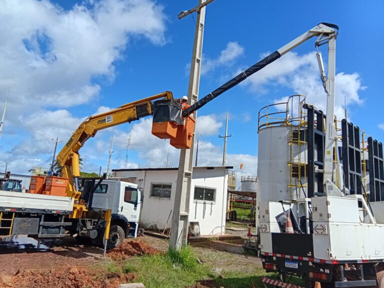 Sim. Frota própria com caminhões, sky, linha-viva, retroescavadeira e mais.